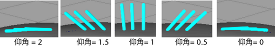 仰角は Maya ファー(Fur)の傾斜と同じです。