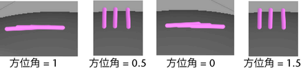 方位角は Maya ファー(Fur)の極性と同じです。