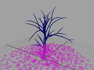 まず Maya のペイント エフェクト(Paint Effects)ツールを使用して木を作成し、次に葉を nCloth オブジェクトにトランスフォームします。