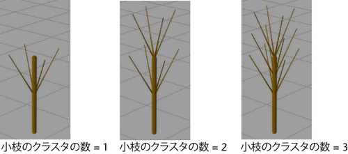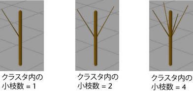 個々の小枝は、大枝またはチューブ上の特定の位置を中心とする放射状のクラスタ内に作成されます。このアトリビュートでは、各クラスタ内の小枝の数を指定します。