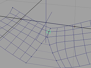 - アトリビュート エディタ(Attribute Editor)で、パラメータ U (Parameter U)を 1.0 に設定します。
