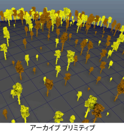 アーカイブ ファイル(Archive Files)リストのどのアーカイブ ファイルを、指定したプリミティブの位置でインスタンス化するかをコントロールします。既定では、アーカイブ ファイルのリストからランダムに選択するエクスプレッションに設定されています。