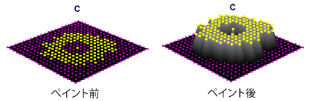 選択したアーティザン ツールを使用して、サーフェスをペイントします。実行するブラシ ストロークは、選択したコンポーネントのみに影響します。次の例にあるように、非選択のコンポーネントはマスクされ、ペイントによる影響を受けません。