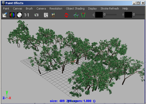 オプションとして深度(Depth)設定(ペイント エフェクト ブラシ設定(Paint Effects Brush Settings)に含まれるチャネル(Channels)ブラシ設定の深度(Depth)を参照)がオン、または深度の強制(Force Depth)オーバーライド(ペイント エフェクト グローバル オプション(Paint Effects Globals Options)にあるシーン(Scene)セクションの深度の強制(Force Depth)を参照)がオンにされたブラシでペイントする場合、ペイント エフェクト(Paint Effects)は、深度チャネル(Zdepth または Zbuffer チャネル)にカメラから測定したペイントの距離を記録します。深度値をグレー スケールとして保存すると、(たとえばバンプ マップなどとして)後で使用することができます。