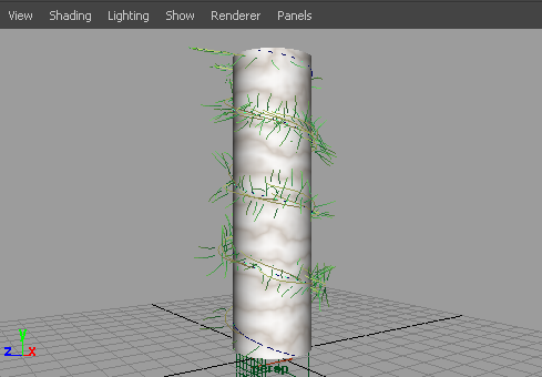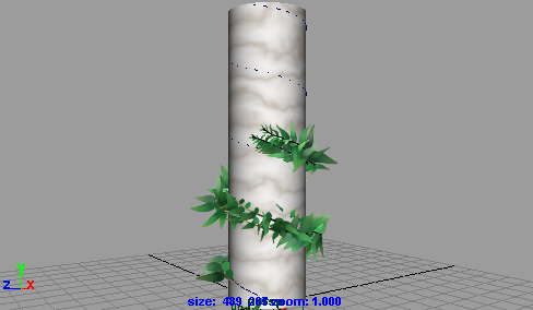 植物(Plant)プリセットとフロー アニメーションを使用すると、柱を登って伸びる植物を表現することができます。