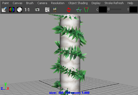 - ツールバーのペイント エフェクト ビューを再描画します(Redraw Paint Effects view)アイコンをクリックして、ストロークをレンダーします。