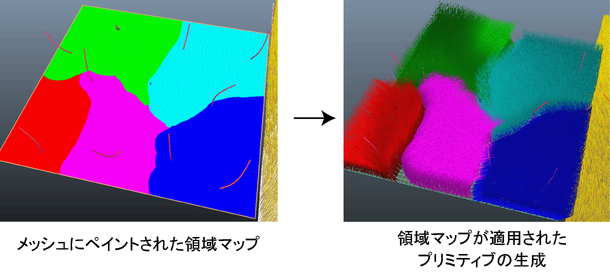 ガイド付きのディスクリプションを作成する場合は、領域マップを使用して、ガイドがメッシュでのプリミティブの配置と動作をどのように補間するかを変更できます。