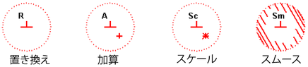 選択された操作にあわせて、ブラシ スタンプが変更されます。