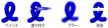 ペイントに使用するブラシのタイプを選択します。ブラシのアトリビュートによって定義されたシェイプがすべてのブラシ タイプで使用されます。