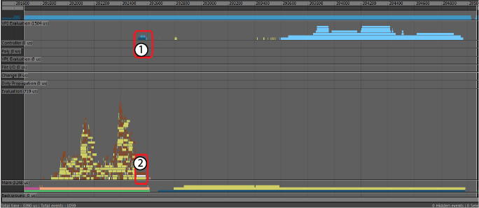 この例では、各フレームのかなりの部分がダーティー伝搬に消費されています。これは評価マネージャで対応できる問題です。