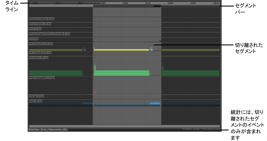 コマンドを使用して、特定のセグメントを分離したり、既定のビューに戻ることもできます。詳細については、profilerTool コマンドの説明を参照してください。