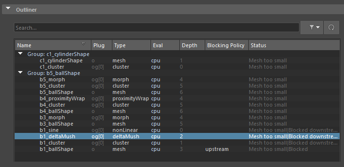 - 評価マネージャと連携し、シリアル(Serial)または並列(Parallel)評価モードでデフォメーションを高速化します。シーンに標準の Maya デフォーマがあり、メッシュ ジオメトリが高密度な場合、これによりパフォーマンスが向上します。結果は、シーン内のデフォーマとメッシュの密度によって異なります。