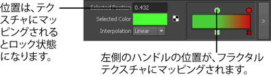 選択した位置(Selected Position)、選択したカラー(Selected Color)、補間(Interpolation)アトリビュートについては、「カラー(Color)」を参照してください。