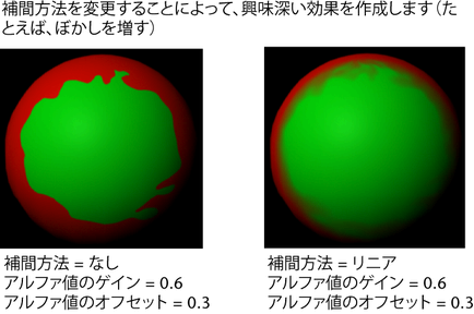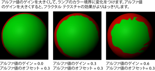 テクスチャの効果を変更するには、アルファ値のゲイン(Alpha Gain)値を増減します。