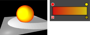 全体的なライトの明るさは、ランプを指数化するのに使用されます。これは、階段状の値のランプを使って、マンガのようなシェーディングを作成するときに使用できます。ランプの右側は出力カラーで、拡散と半透明なライティングの明るさが 1.0 以上の部分です。左側は明るさが 0 の出力カラーです。