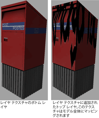 ハードウェア レンダラでレイヤ テクスチャを表示し、各テクスチャごとに複数の UV セットを作成できます。これにより、希望どおりにテクスチャをシーンに配置することができます。