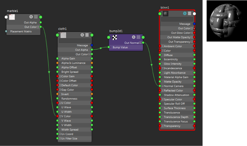 ヒント: 環境マップを使用するマテリアルをバンプ マッピングする場合は、バンプ ノードの