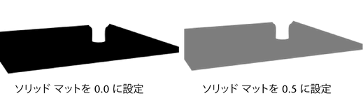 ソリッド マット(Solid Matte)は、マット チャネルの値をマテリアルに対して一定にします。既定値の代わりに、ユーザがマットの不透明度(Matte Opacity)スライダで指定する値が使用されます。