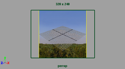 デフォルト設定の場合、またはフィルム ゲートに合わせる(Fit to Film Gate)を選択した場合、フィルム ゲート内でイメージ プレーンは横方向、または縦方向にぴったり収まるようになります。
