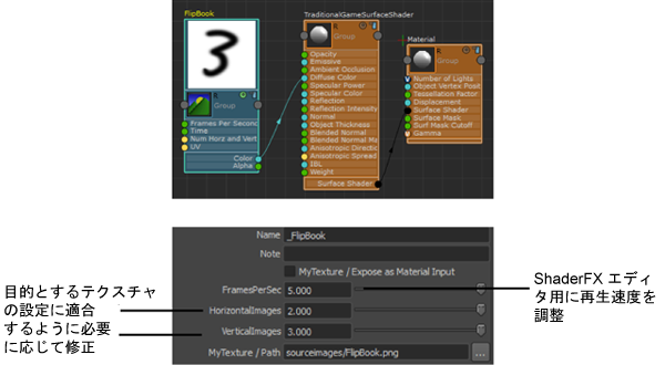また、FramesPerSec アトリビュートを調整することにより、ShaderFX エディタの再生速度を変更することもできます。