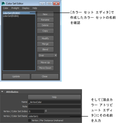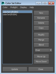 - メッシュ表示 > カラー セット エディタ(Mesh Display > Color Set Editor)を選択してカラー セット エディタ(Color Set Editor)を開き、作成されたカラー セットの名前を確認します。