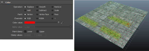 - 頂点カラー ペイント ツール(Paint Vertex Color Tool)設定で、カラー値(Color value)の値を赤に変更します。