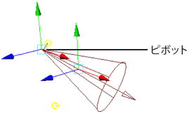 ピボット マニピュレータ(Pivot manipulator)を動かしてクリックすると、ライトや注視点を移動したときに、ライトが回転するポイントを変更できます。マニピュレータ(Pivot manipulator)を再度クリックすると、ピボット ポイントは使用できなくなります。このオプションは、すべてのライトに付いています。