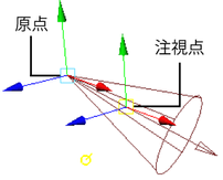 ライト マニピュレータの 2 つの部分を動かして、ライトの位置(原点)と方向(注視点)を変更します。このオプションは、すべてのライトに付いています。