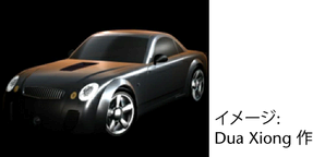 次のイメージは、studioClearCoat プラグインを使用して作成されたものです。車のボンネット部分と最上部の反射が、前方および側面の反射よりも強くなっていることに注意してください。