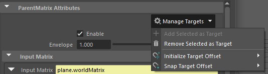 parentMatrix ノードには、ターゲットごとに次のオプションがあります。