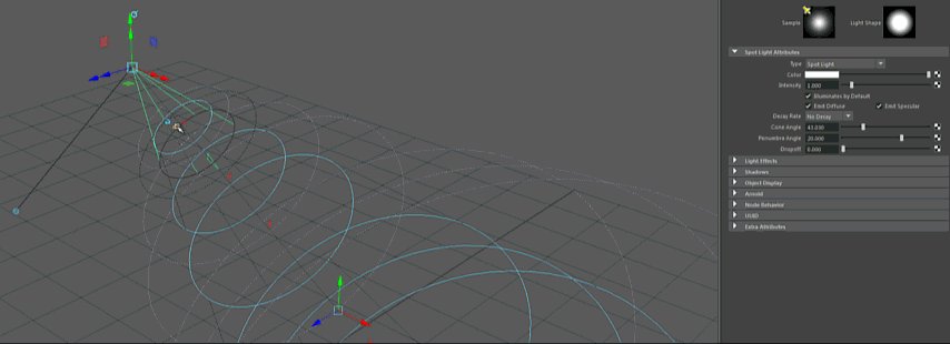 円錐半径マニピュレータを調整すると、スポット ライトのビーム角度を変更できます。このオプションは、スポット ライトだけにあります。