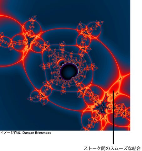 - このアトリビュートは、円、ポイント、およびストークの間にスムーズな合流地点を作ります。 この効果を調整するときは、フォーカスを高めることが必要となる可能性があります。