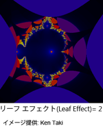 エスケープ半径(Escape Radius)が早い反復(大きな画像が前側)を引き起こして後の反復(より小さい画像が後側)を不明瞭にする可能性があります。 しかし、小さく詳細な画像(後の反復)が前側に示されるため、
