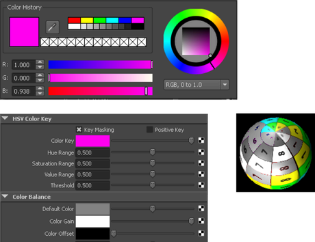 - カラー チューザ(Color Chooser)でカラー キー(Color Key)のカラーを変更します。次に、赤やピンクを含むすべてのカラーがマスク アウトされ、ステンシル(Stencil)のカラー バランス(Color Balance)の既定のカラー(Default Color)に置き換えられます。