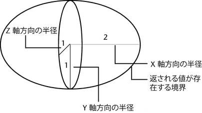vector は、楕円体の X、Y、Z 軸方向の半径です。
