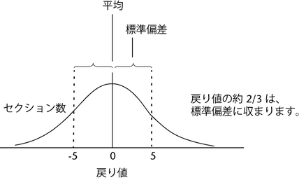 stdDev には、1 次元正規分布の標準偏差をスカラーで指定します。戻り値は 1 次元ガウス(Gaussian)分布に従います。