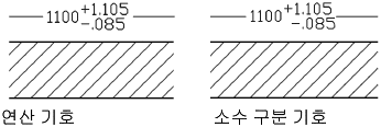 공차 값을 수직 배치할 수 있을 뿐 아니라 상한 및 하한 공차 값의 수평 정렬을 조정할 수도 있습니다. 연산 기호 또는 소수 구분 기호 중 하나를 사용하여 상한 및 하한 공차 값을 정렬할 수 있습니다.