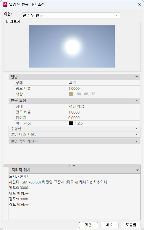 SUNPROPERTIES(명령) 찾기: 천공 특성