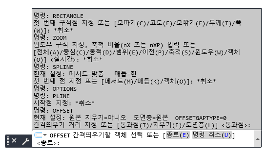명령 윈도우에서 문자를 편집하여 명령 및 시스템 변수를 실행하거나 수정할 수 있습니다.
