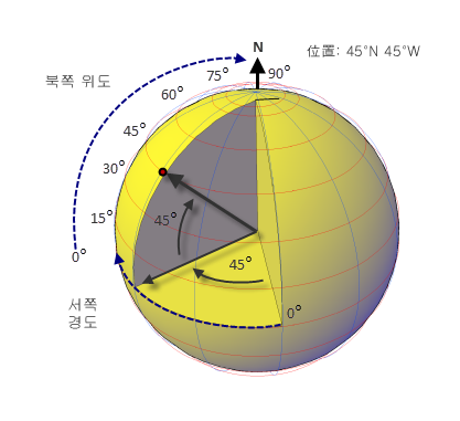 지리적 좌표계는 지구의 곡률을 고려하며, 위치는 일반적으로 경도, 위도 및 고도로 지정됩니다.