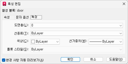 속성이 있게 될 도면층을 지정합니다.