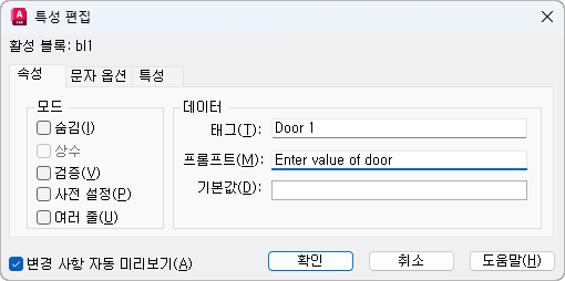 블록을 삽입할 때 속성에 지정된 기본값을 설정합니다.