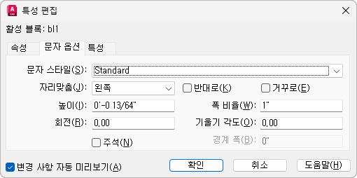 속성 문자의 문자 스타일을 지정합니다. 이 문자 스타일의 기본값이 이 대화상자에 표시된 문자 특성으로 지정됩니다.