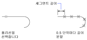 객체의 길이 또는 둘레를 따라 측정된 간격으로 점 객체 또는 블록을 작성합니다.