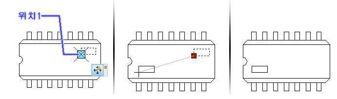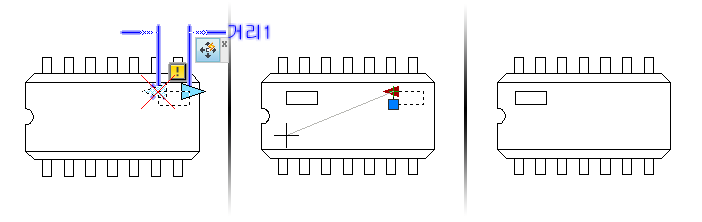 선형 매개변수와 연관된 이동 동작은 선택 세트의 모든 객체를 선형 매개변수 방향으로만 이동합니다. 블록 참조에서 매개 변수 키 점은 그립의 위치입니다.