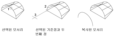 2개의 점을 지정하면 첫 번째 점이 기준점으로 사용되며 그 기준점을 기준으로 하나의 사본이 배치됩니다. 점 하나를 지정한 후 Enter 키를 누르면 원래의 선택점이 기준점으로 사용됩니다. 그 다음 점은 변위점으로 사용됩니다.