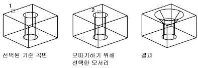 3D 솔리드 또는 표면에서 모서리를 선택하여 수정할 수 있습니다.