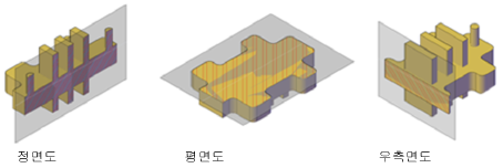 현재 UCS의 지정된 직교 방향(예: 정면도, 배면도, 저면도, 평면도, 좌측면도 또는 우측면도)에 맞춰 단면 객체를 정렬할 수 있습니다.