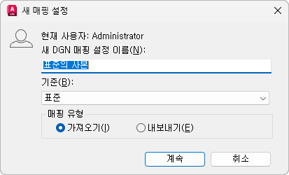 DGN 파일 가져오기 또는 내보내기를 위한 매핑을 설정합니다.