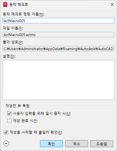 현재 동작 매크로 파일이 저장된 위치를 표시합니다.